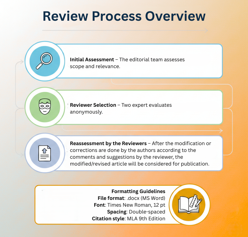 We accept various types of scholarly contributions. Authors must ensure all submissions follow the MLA 9th Edition citation style and are submitted in .docx format.